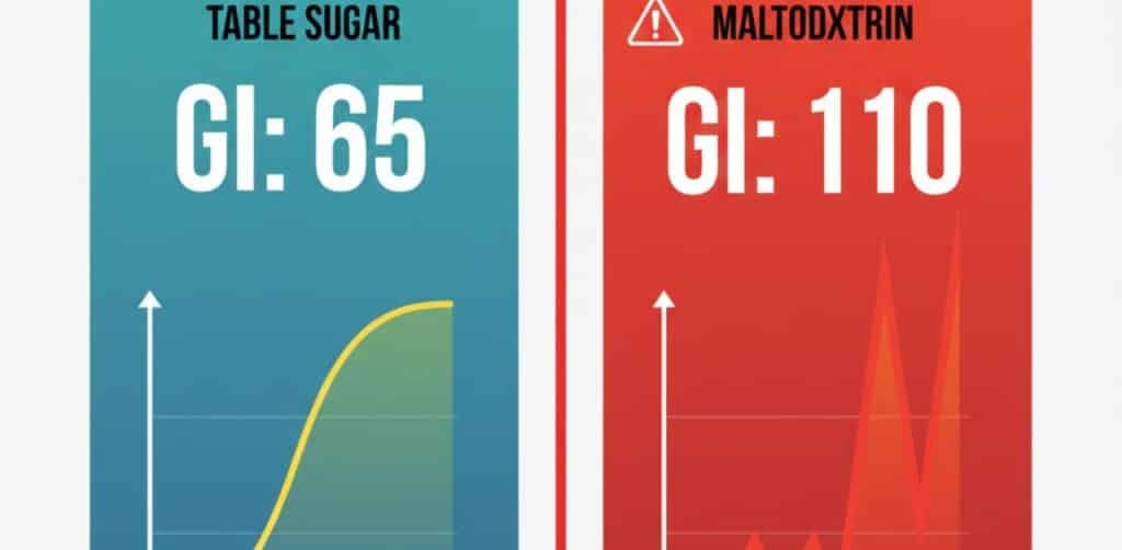 • The Danger: Maltodextrin has a Glycemic Index of 110—higher than table sugar!